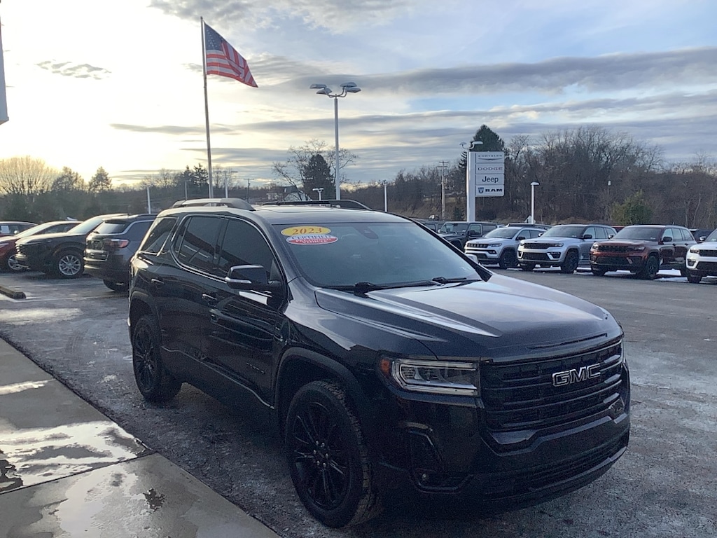 ** PANO SUNROOF! LEATHER SEATS! BLACKOUT PACKAGE! ELEVATION PACKAGE! ** THIS SUPER SHARP 2023 GMC ACADIA SLT AWD FEATURES A 2.0L TURBO I4, LEATHER SEATS, REAR CAPTAINS CHAIRS, 20 BLACK ALLOY WHEELS, AND WAY TOO MUCH MORE TO LIST!! THIS CERTIFIED PREOWNED VEHICLE GOES THROUGH A 125 POINT SAFETY CHECK AND COMES WITH A WARRANTY! SPECIAL FINANCING IS AVAILABLE. NO CREDIT? NO PROBLEM, WE CAN HELP! WE ARE A CERTIFIED CHRYSLER JEEP DODGE RAM DEALER SO SHOP US WITH CONFIDENCE!! WE NEED YOUR TRADE, AND WE WILL GIVE YOU TOP DOLLAR FOR IT! SOLOMON CHRYSLER JEEP DODGE RAM, BROWNSVILLE PA 724-785-8000. WWW.SOLOMONAUTO.COM