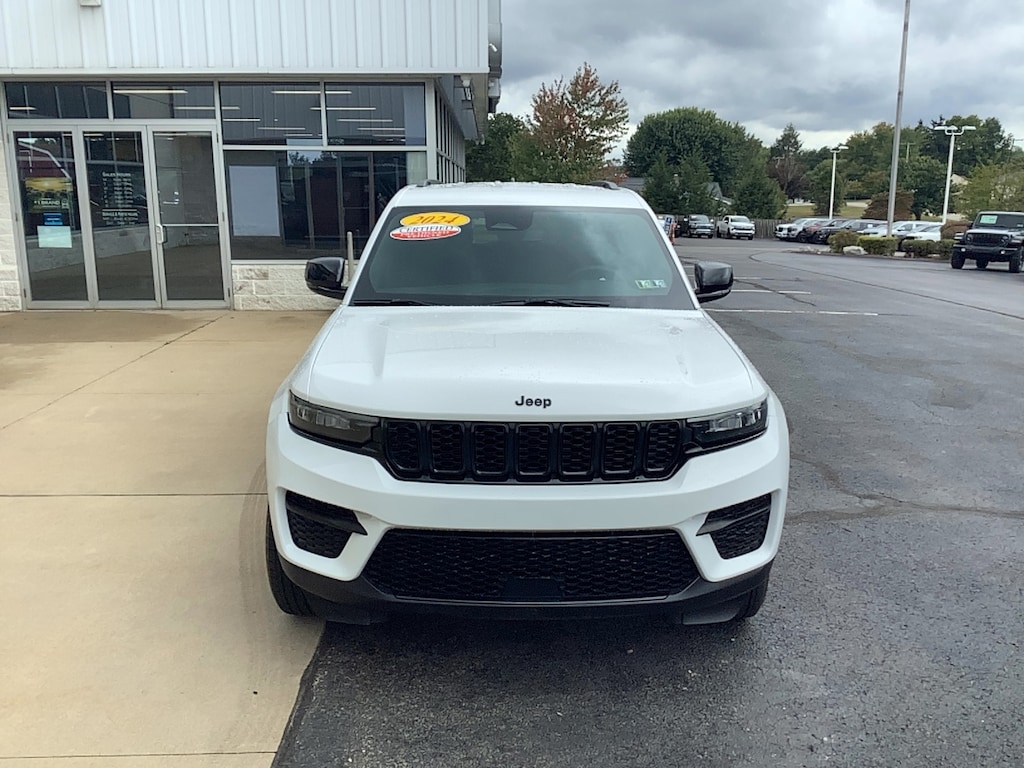 ** ALTITUDE** 2024 JEEP GRAND CHEROKEE ALTITUDE.FACTORY CERTIFIED 100K MILE WARRANTY!! 3.6 V-6, 4X4, POWER LIFTGATE, HEATED STEERING WHEEL. HEATED SEATS, RAIN SENSITIVE WIPERS, ALTITUDE APPEARANCE PACKAGE, APPLE CARPLAY, ANDROID AUTO AND MUCH MORE. THIS CERTIFIED PREOWNED VEHICLE GOES THROUGH A 125 POINT SAFETY CHECK AND COMES WITH THE REMAINING 3 YEAR/36,000 FACTORY WARRANTY AND A 7 YEAR/100,000 POWERTRAIN WARRANTY! SPECIAL FINANCING IS AVAILABLE. NO CREDIT? NO PROBLEM, WE CAN HELP! WE ARE A CERTIFIED CHRYSLER JEEP DODGE RAM DEALER SO SHOP US WITH CONFIDENCE!! WE NEED YOUR TRADE, AND WE WILL GIVE YOU TOP DOLLAR FOR IT! SOLOMON CHRYSLER JEEP DODGE RAM, BROWNSVILLE PA 724-785-8000. WWW.SOLOMONAUTO.COM